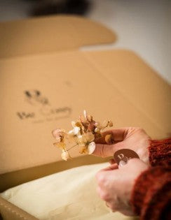 Select a box, from small to large. This will be beautifully packaged with tissue paper and dried flowers. Then choose a selection of products. Lastly pick a card to suit the occasion and we'll handwrite that for you with your personal message.